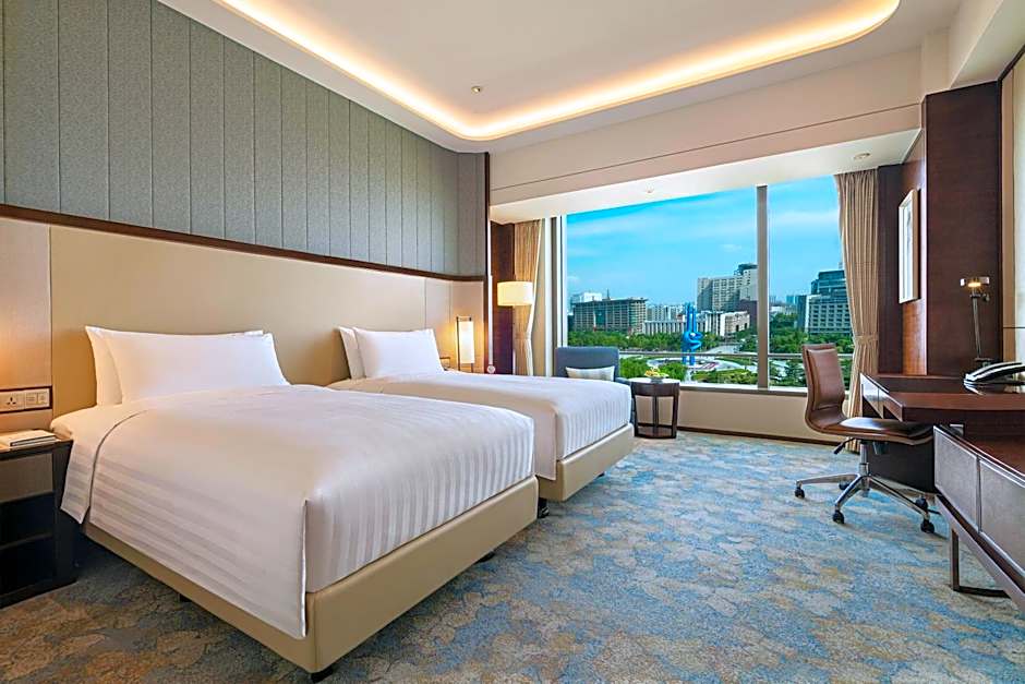 Guests will have a special experience as this twin room features a hot tub. The spacious twin room offers air conditioning, soundproof walls, as well as a private bathroom featuring a walk-in shower and a bath. The twin room provides a TV with satellite channels, a mini-bar, a dining area, a wardrobe as well as city views. The unit offers 2 beds.